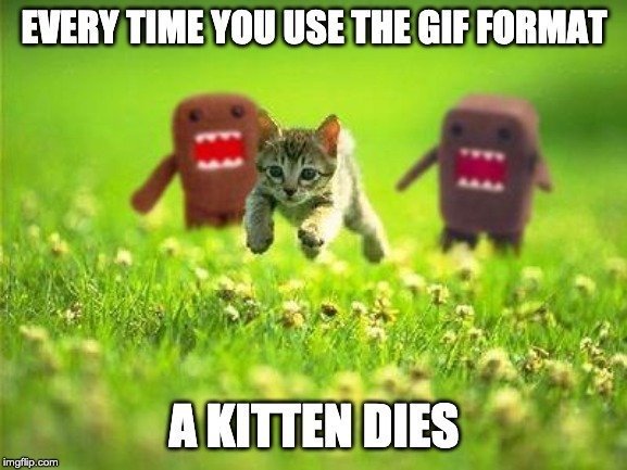 I’ve filed an issue for WordPress/Gutenberg here to start this conversation, but I can’t do this alone. If you use or develop a CMS that defaults to GIFs, ask them to do better. Do it for the kittens.