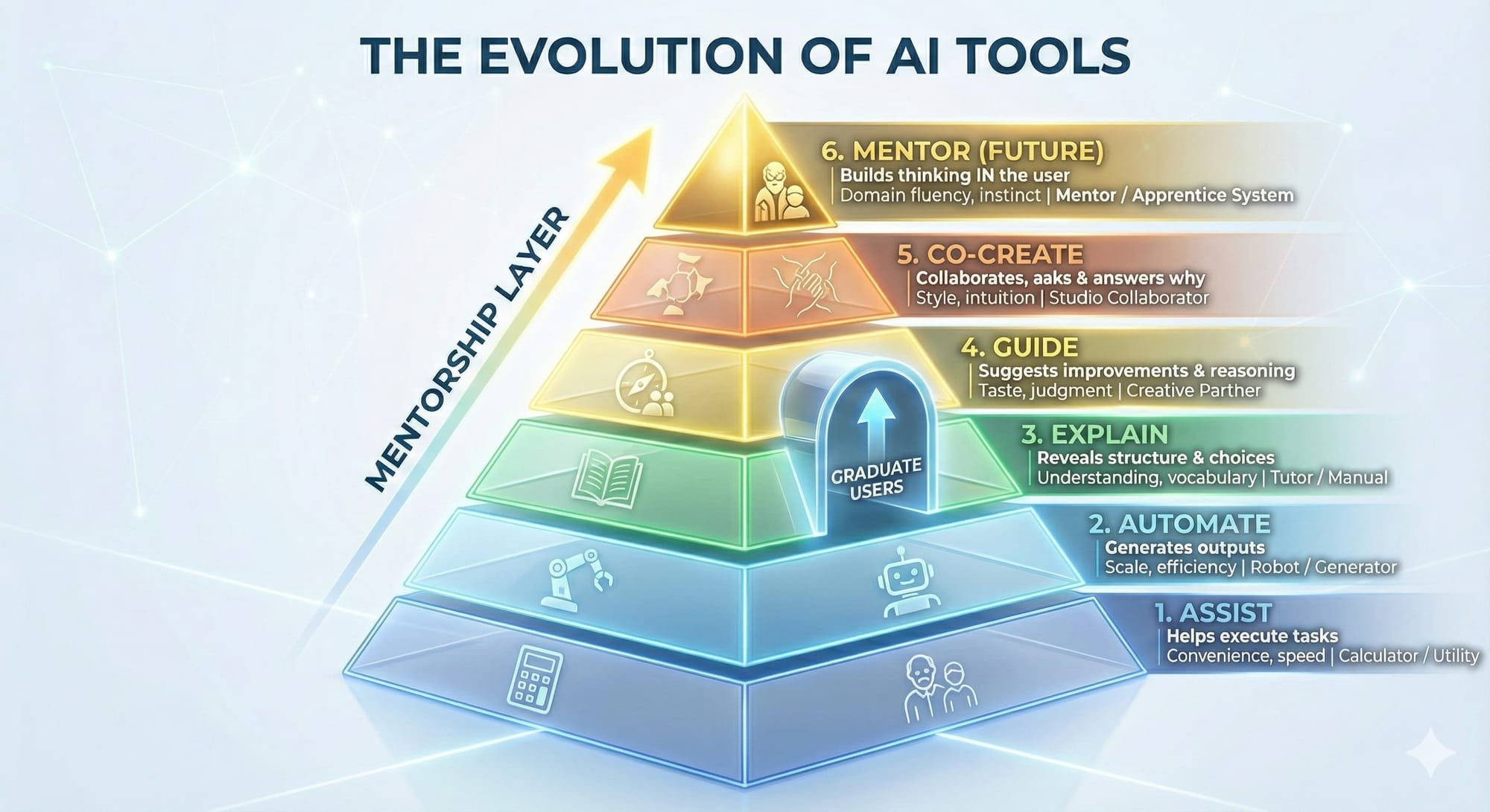 The tools that succeed in this space won’t be the ones that generate the prettiest output. They’ll be the ones that help users develop judgment: that whisper, suggest, question, and reveal.